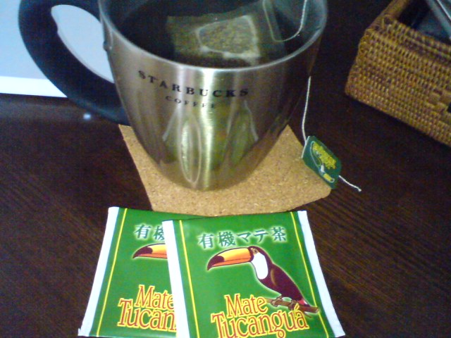 有機マテ茶のサンプルが当たったのでさっそくためしてみました。 マテ茶を飲むのは初めてです。 実は紅茶があまり得意ではないので どうかな・・・と思ったのですが、 紅茶より全然苦味がなくて美味しい。。って言うか飲みやすい。 1パックで1ℓまで作れるそうです。 せっかく飲むのなら美味しく飲みたいと お気に入りのパディントンのティーセットを出してみました。 このポットが600佞らい入ります。 私にはちょうどいい濃さでした。