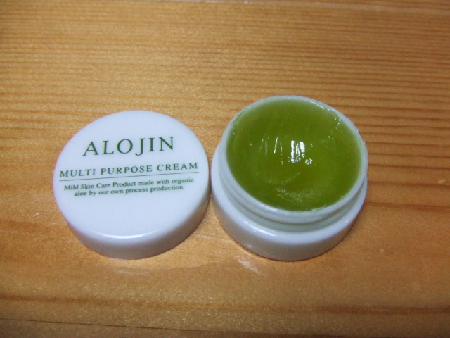 【アロジン マルチパーパスクリーム】 サンプルを頂きました。 天然成分@配合で私の乾燥肌と娘の乾燥性湿疹によいのでは?と 期待をしていました。 まず、シワシワの乾燥ですごい私の手で試してみると、 伸びは・・毛のないところ(笑)には良いです(笑)正直、べたついた感は塗るときに感じましたが、塗ってしまうとそうでもなく、 朝起きると、そのべたつきもまったくなくしっとり♪ 朝の水仕事で、若い肌のなったかのように水滴が玉状態で驚き!!手の甲の色もなんだか明るくなりました。 娘も、病院で処方された薬では、しみ...