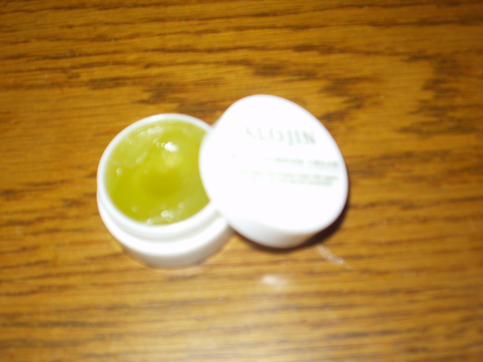 モニター品を見て、あまりの小ささにびっくり。ふたを開けると、緑色のクリームが入っていました。アロエ成分の色です。 モニター品が届いた時、私の目の周りは、かゆくて、がさがさしていました。ぬった感じは、ちょっと脂ぎってしまったという感じ。しかし、2・3日続けていたら、慣れてきました。そして、 目の下のがさがさが改善してきました。ぬった後の油っぽい感じが苦手な人は、寝る直前に塗るといいですよ。手のがさがさもよくなりました。小さいけれど、効果のある製品だと思います。