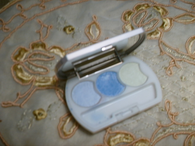 専用コンパクトにお気に入りのアイシャドウを3つセットして作ったオリジナルコンパクトです。 夏向きにグリーンベール・ブルーベール・シャイニーブルーの3つをセレクトしましたがこのチョイスはちょっとランダムに選びすぎてまとまりのないコンパクトになってしまったようです。 30種類の機能と色の異なるアイシャドウから選ぶコツのノウハウがわかったら面白いでしょうね。