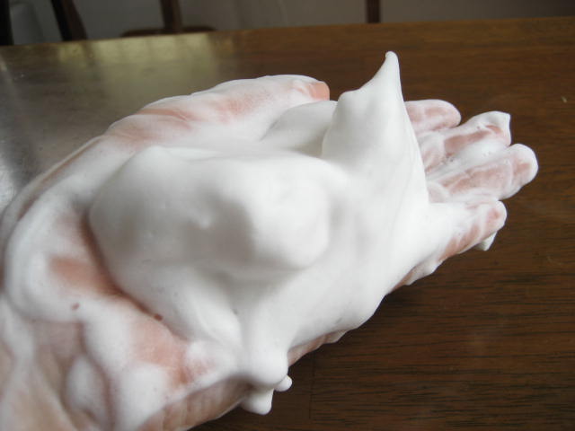 泡立ちもよく、密度が濃くてもったりとしたクリームのような泡が出来ます(私は洗顔ネットなしでもOKでした)。洗顔していても下にたれてくることはないしっかりとした泡です。