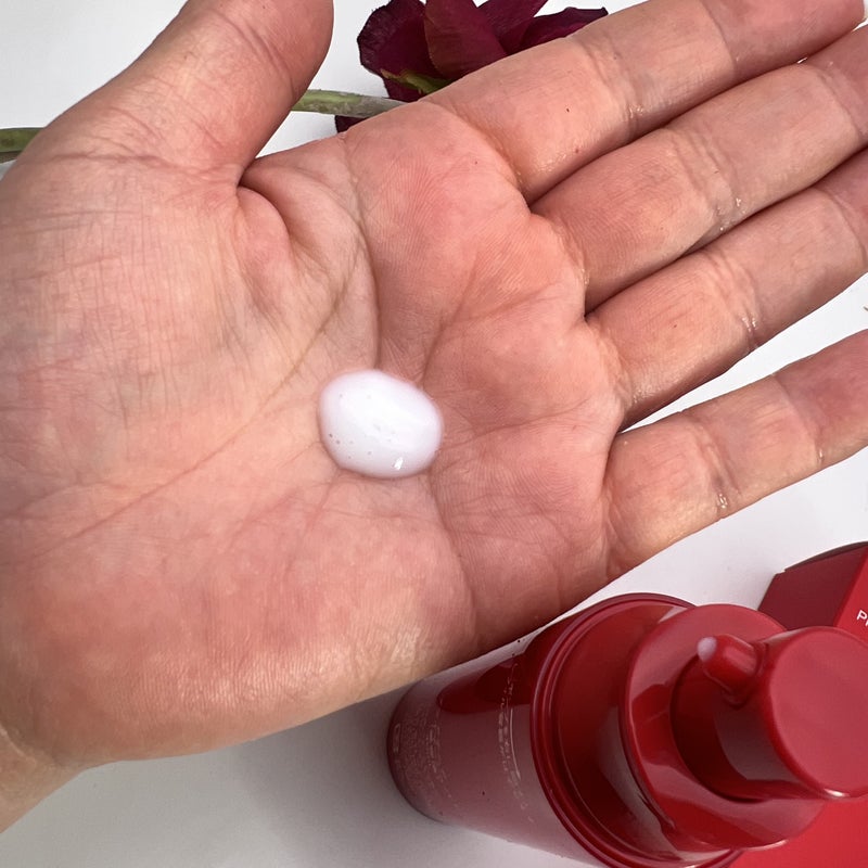 こちらのローションは 肌のゆらぎや乾燥が気になるときにアプローチしてもらえるみたいです。 使用方法は スキンピールが お手元にあれば その後すぐ ハンドプレスで1回量を2回使います。 ベタつかないでサラッとしているので 2回ハンドプレスをしても 肌に十分馴染んでくれる使用感です。 香りもないのも体調に左右されずに使える気がします。