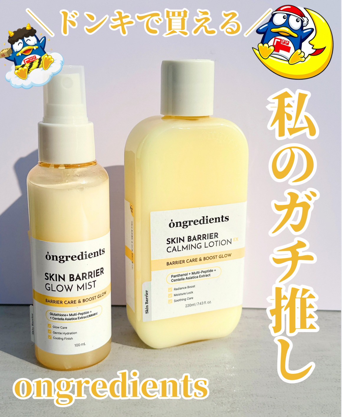 #PR 【ongredients(オングリディエンツ)】 ・スキンバリアカーミングローションEX ・スキンバリアグローミスト @ongredientsjp メイク前の仕込みにぴったり。 肌のことを第一に考える人ほど、 スキンケアの仕込みを大切にしてる*1。 オリーブヤングで1位*2を獲得したブランドが、 ついにドンキでも買えるようになった。 ローションはミルクみたいにやわらかく、 肌になじむのにベタつかない軽さが魅力。 あとに重ねる下地やファンデのノリも、 スルッと変わるのが実感できる。 もう...