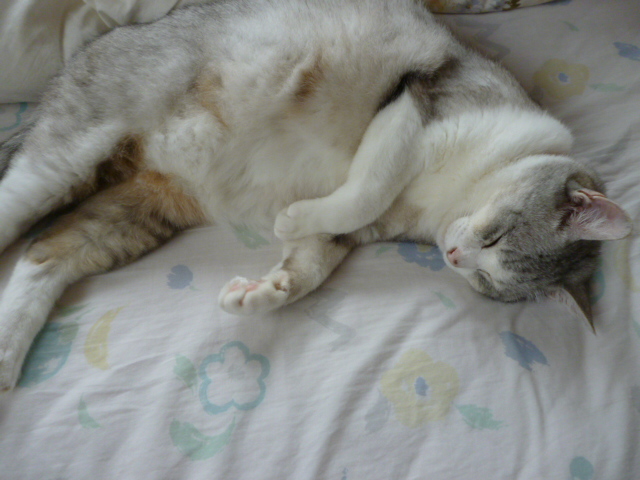 今朝は私が起きるころに、猫がやって来て、今も寝室でよく寝てました。