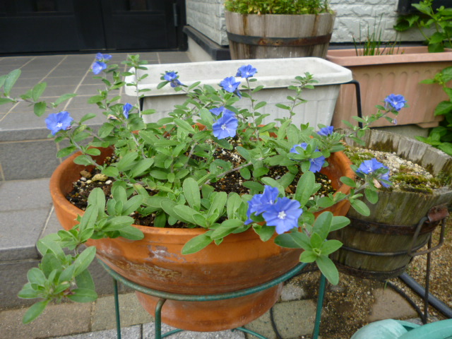 玄関の外にうえきを出していた