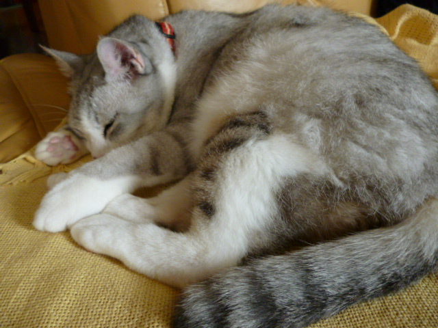 猫はぐっすり、よく寝ています。