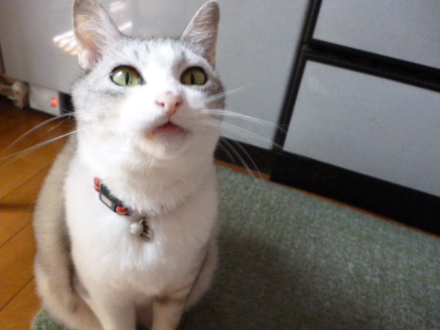 猫は目を覚まして、またお腹が空いたと鳴くので、少しおやつをあげました。