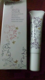 届きました。顔のしわ・法令線を改善して肌の弾力性=柔らかさ・ふっくら張りのある肌にしてくれるピュアシルクを購入しました。