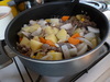 買い物から帰って、カレーの用意をして煮込んでいます。