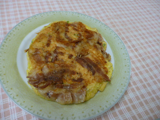 今日は昨日焼いたい好み焼きを一枚残しておいたので、それを食べます。