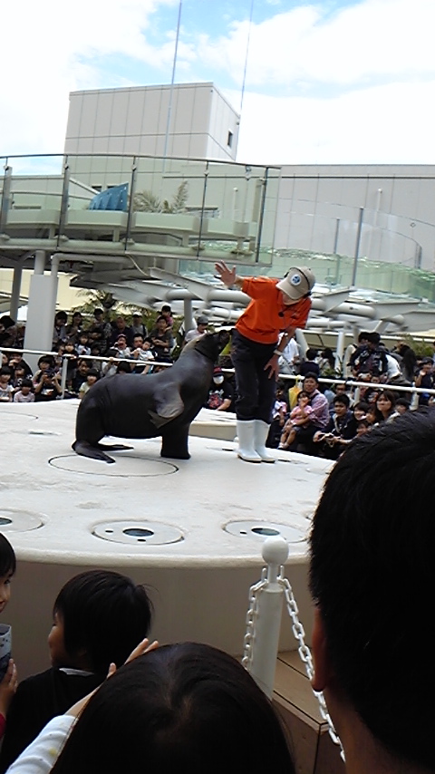 サンシャイン水族館で、ダイバーさんが水槽に入ってのパフォーマンスをみました。