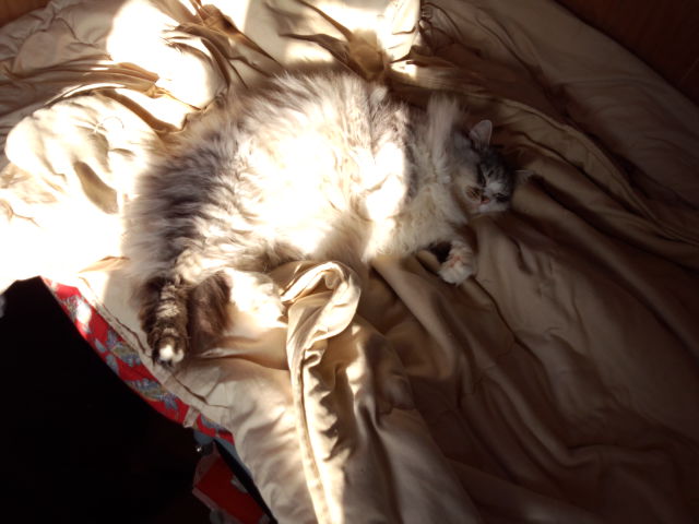 猫は、出掛ける前と同じ所で、寝ています(=^・^=)
