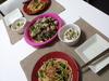 今お友達が帰りました♪今晩は野菜たっぷり真鯛のアクアパッツァ、菜の花と塩昆布のパスタ、ミックスビーンズのマッシュポテト。デザートにイチゴ。お土産にロールケーキも頂いて食べました。お腹いっぱい♡