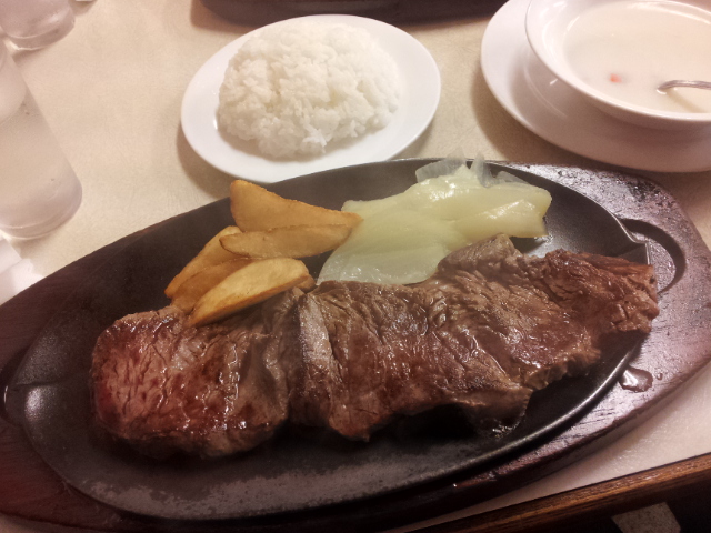 昨日の晩は、芸能人御用達のステーキ屋さんのジャッキーステーキと言うお店でテンダーローインステーキのLを食べました〜♡ボリューミー!