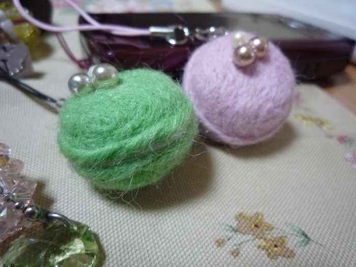 羊毛フェルトで、マカロンの携帯ストラップを作りました。