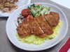 今日はミラノ風カツレツ・チキンヴァージョンです☆サフランライスを使いました。旦那さんがイカも揚げてと言ったので揚げ物2品になっちゃったー。
