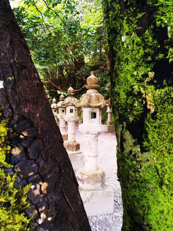 桜のピークの時だったら立ち並ぶ灯篭と桜を一緒に見れたんだろうなぁ〜。