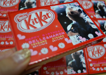 チョコラボキットカットで、オリジナルのキットカットを作りましたー♪愛犬ベル&マロンの写真入りです(^^)/
