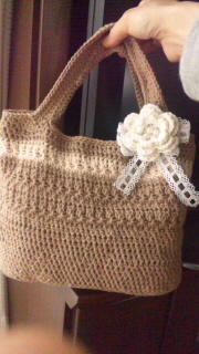 コットンの糸でスタークロッシュ模様のバッグを編みました。