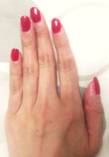 きれいに塗れたネイルをアップ