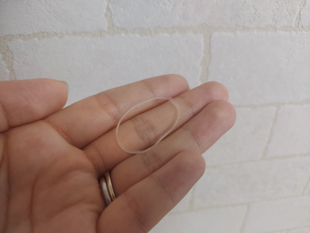 ゴムだけでピンは不要!ヘアオイルかワックスも用意しよう今回紹介するヘアアレンジでは、ピンは使わずにゴムを4本使っていきます。100円均一などで購入できるクリアタイプの細いゴムを用意しました。