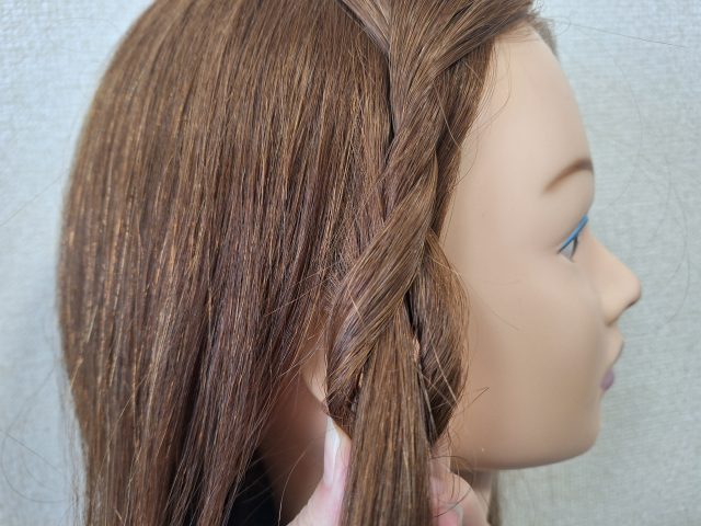 ⑺反対側も同様にアレンジし、バランスを見て髪をほぐしたら完成です。