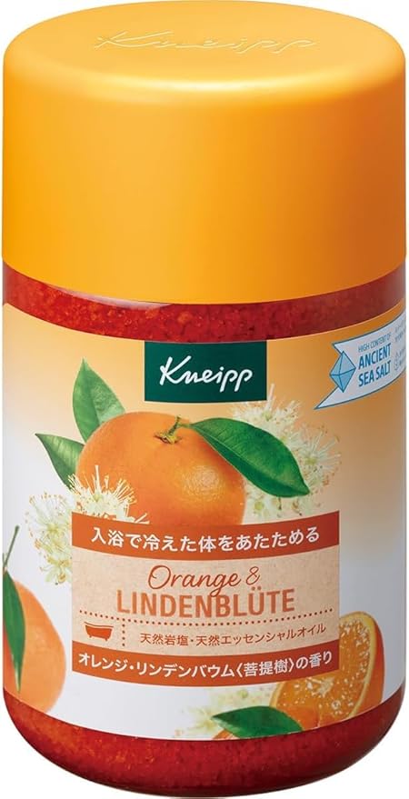 「クナイプ」のバスソルトは、天然ハーブの香りを堪能できるシリーズです。今回選んだ「オレンジ・リンデンバウム〈菩提樹〉」は、奥行きを感じるみずみずしさが印象的で、何度も深呼吸したくなる香り。