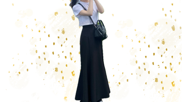 ショート丈のTシャツにはハイウエストのボトムスを合わせましょう。ウエスト位置を高めに持ってくることで脚長効果も抜群!もたつかずスッキリ着こなせるのでヘルシーな印象に。