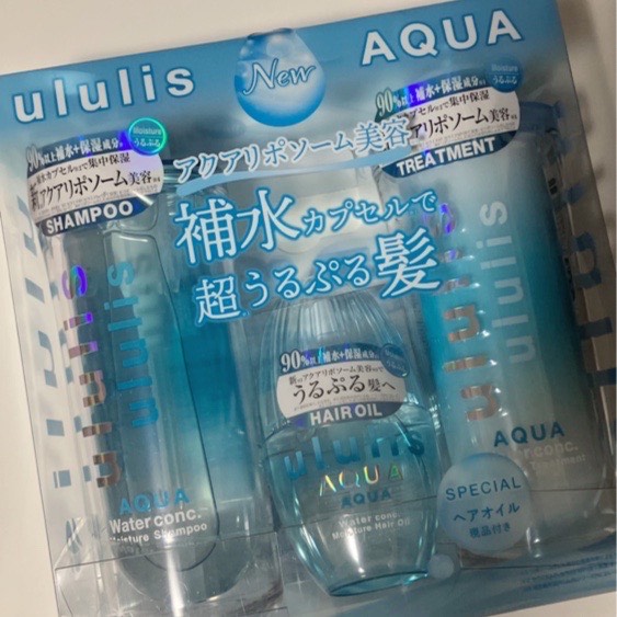 今回は“うるおいケア”に特化した「アクア」シリーズ。シャンプー・トリートメント・ヘアオイルの3点がセットになっていてコスパも◎。