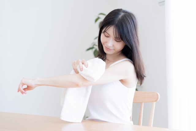 フレグランス本来の香りが変わらないよう、使用前に汗を拭き取るひと手間をお忘れなく!その際、匂いつきのシートは避けましょう。
