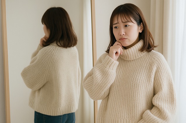厚手ニットを着ると「なんだか着ぶくれして見える…」という人は少なくありません。でもその原因は、体型ではなく“選び方とバランス”にあるんです。実は太って見える人には、共通する3つのポイントがあります。