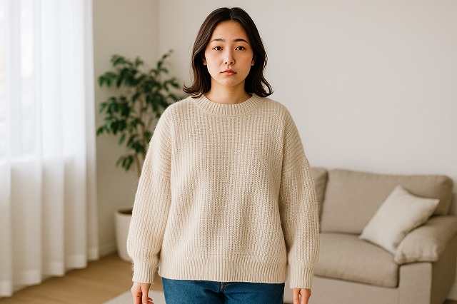同じ厚手ニットでも、スッキリ見える人はちょっとした“テクニック”を知っています。それは、ニットそのものの形やサイズではなく、「立体感」「抜け感」「重心」の3つをどう作るか。