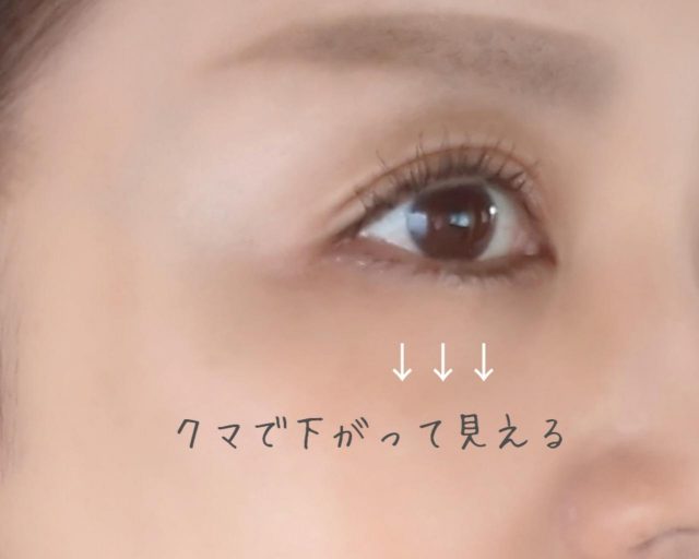 目の下三角ゾーンに”クマ”が鎮座してしまうことで、その分お顔が下がって見えてしまいます。乾燥しやすく、そしてよく動いてヨレやすい目の下は、あまりファンデーションに頼らないのが理想的です。