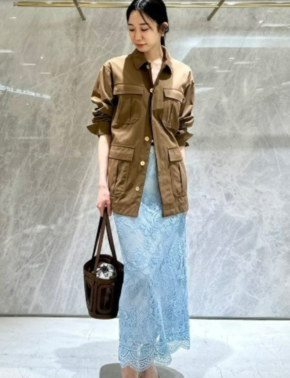 寒暖差がまだまだ気になるこの季節、レーススカートとボトムを組み合わせたレイヤードスタイルは、まわりとかぶりにくい個性を活かせるコーデ。