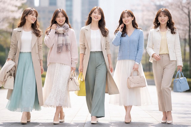 季節の変わり目は、おしゃれの幅が広がる楽しい時期でもあります。ほんの少しの工夫で印象は大きく変わり、気分も前向きになります。大人女性ならではの上品さと余裕を大切にしながら、自分らしい春コーデを楽しんでみてください。