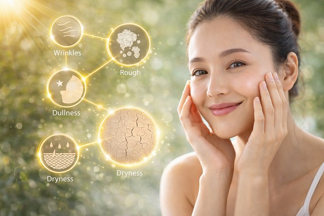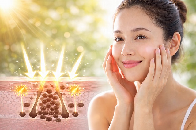 グルタチオンは体内にも存在する抗酸化物質で、活性酸素を除去する働きを持っています。紫外線やストレス、加齢によって増える活性酸素は、肌のくすみや老化の原因に。
