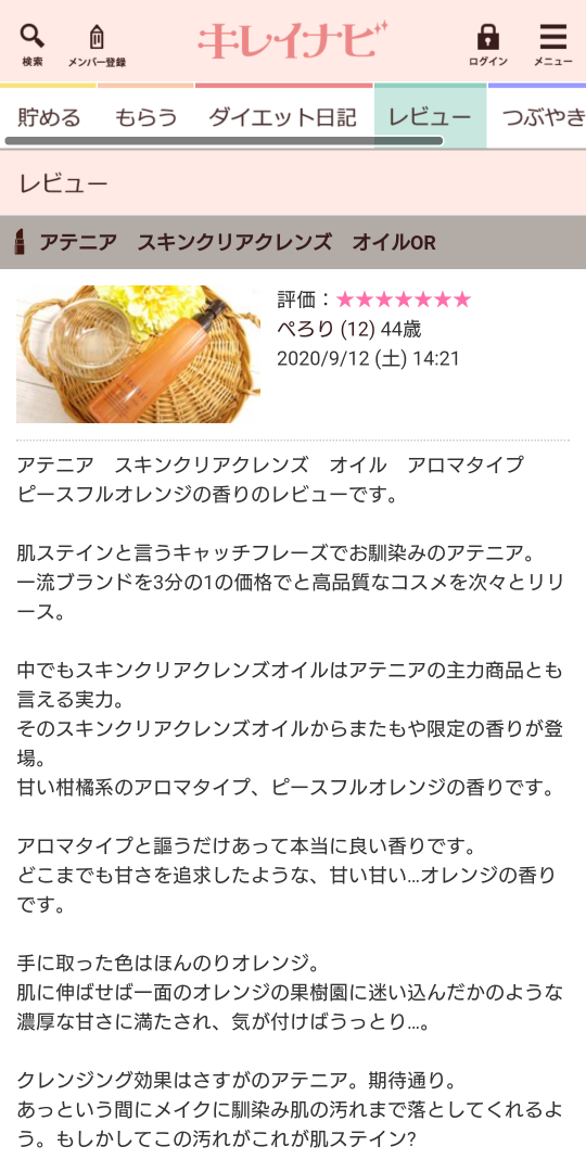 先日の記事からアテニアのクレンジングオイルです。