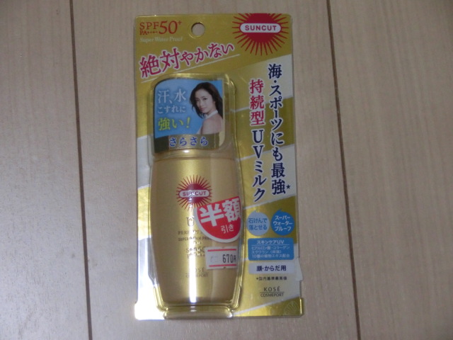 増税前の駆け込み消費で、日焼け止めを買いました。数日前は、知らないメーカーの美白効果を謳った日焼け止めが半額でしたが、今日になって馴染みのあるメーカーの日焼け止めが半額に。肌に合わない成分の心配がないのも購入の決め手でした。