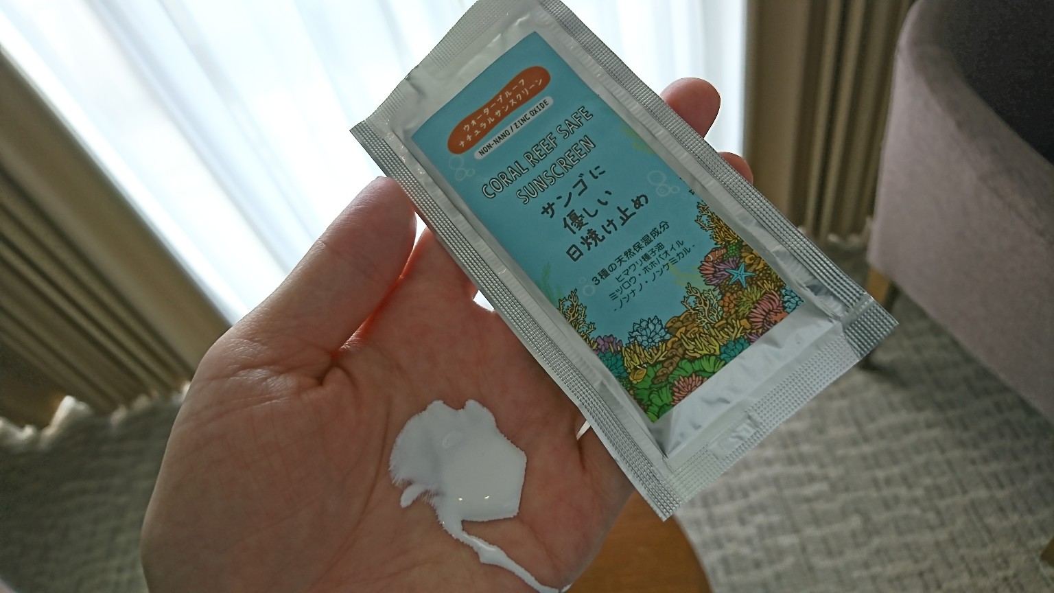 ↓を塗っていきました。少し色が付いていますが、体にも使える日焼け止めなので、使ってみました。光コントロールで肌をきれいに見せてくれるのも嬉しい効果です☆
