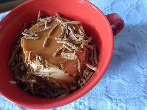 オールブランちょい足しプリン・・・糖分と脂肪分が食物繊維に包まれてポイされますように〜