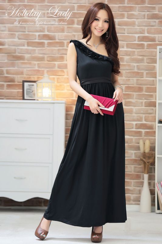 柔らかで着心地の良い素材を使用した、リラックス感漂うロング丈ドレス♪