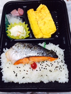 出し巻き卵と焼き鮭のお弁当。