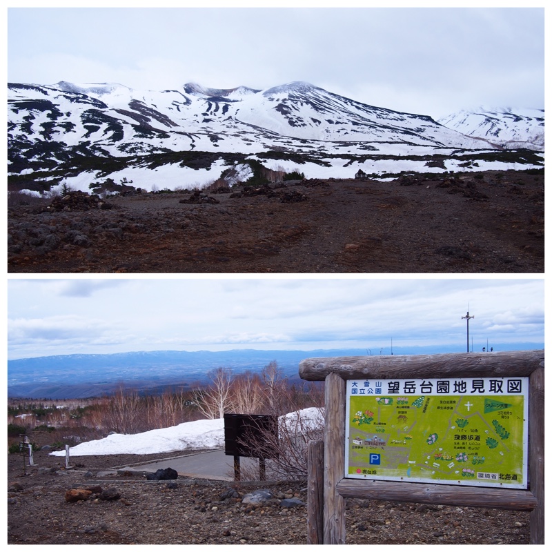 冬季間通行止めだった 十勝岳温泉と白金温泉をつなぐ 道道966号(十勝スカイライン、パノラマライン)が4月21日に開通しました。この道は大好きなドライブコースです。写真は途中の望岳台からの眺めです。望岳台は美瑛岳や十勝岳などの登山口になっています。