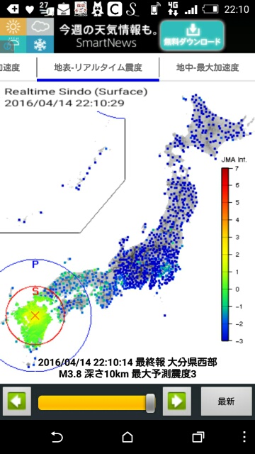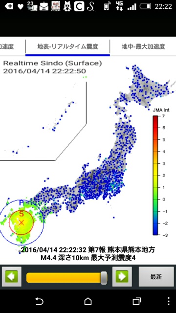 熊本の地震がこの1時間くらいで何度もお知らせが来ております。
