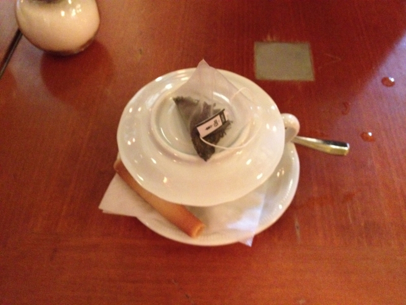 暖かい飲み物を頼むとクッキーやチョコレートが付いてくる