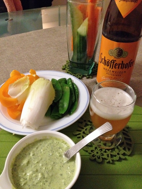 これに例のグリーンのハーブのソースが付く