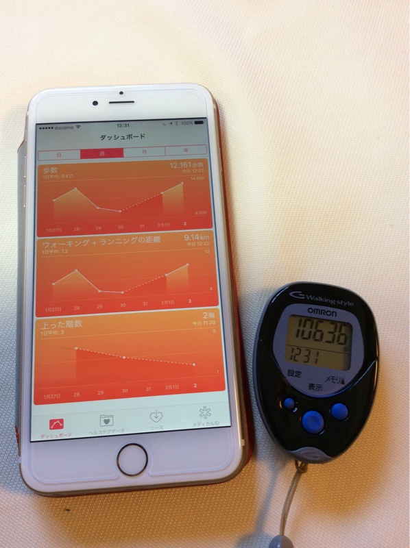 ウォーキングに行ってきました。今日は昨日より暖かく感じました。汗をかきました。歩数はスマホのアプリで12161歩、万歩計で10636歩です。スマホの方が信頼がおける数字なのかなぁと思っています。