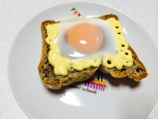 自家製パンで目玉焼きトースト出来上がりました♪
