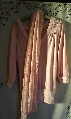 お気に入りファッション7 リサイクルショップで新品ゲット! もとは1万円のものでしたがリサイクルショップ価格で1000円位 さらにセールで770円でした! 淡いピンクで肩やバックや袖上部がレースになっています