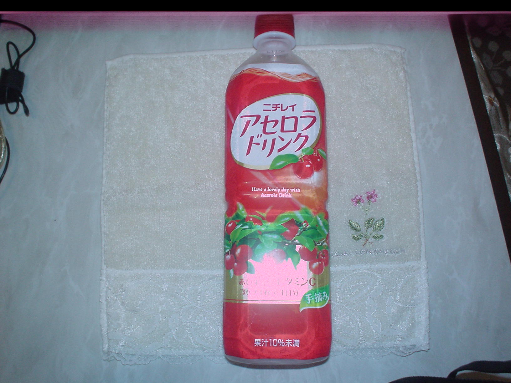 ニチレイのアセロラドリンクです。 小さいサイズの瓶もありますが、 こちらは、ペットボトルサイズで 果汁10%になります。 とても飲みやすくて、ビタミンCもたっぷり 取れるので、好きなのですが、 あまり、売ってるのをみかけません。 ( 薬局で、限られたところにしかなくて、 なので、★ 4つにします。 )